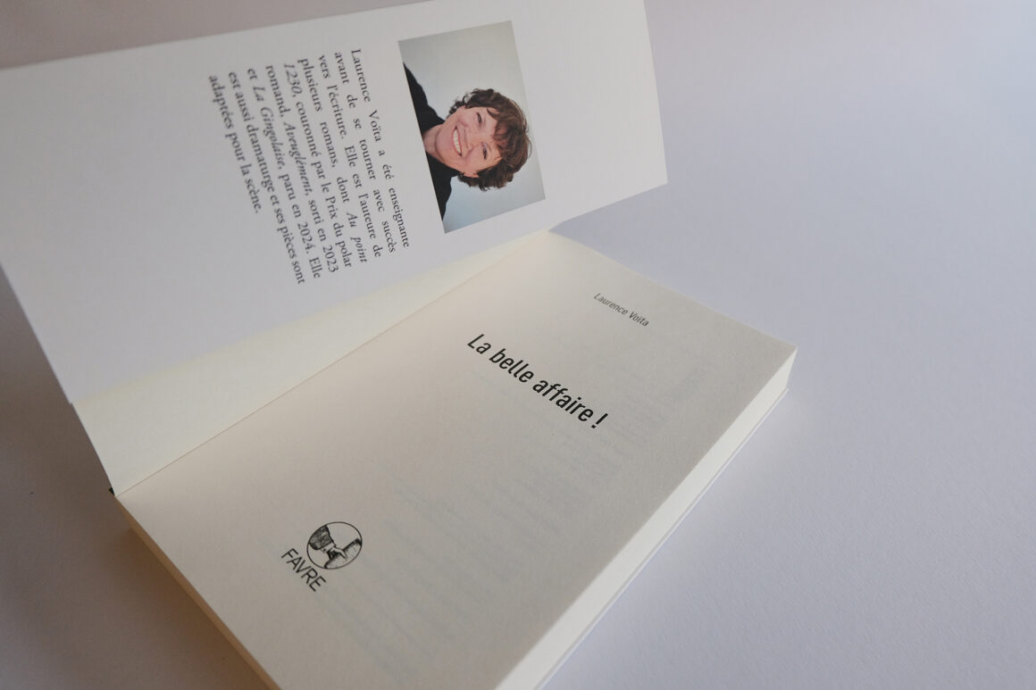 Couverture du livre « La Belle Affaire ! » de Laurence Voïta. Éditions Favre, 2026. Ce roman se concentre sur les moments décisifs de la vie des personnages, offrant une réflexion sur la réalisation de soi.